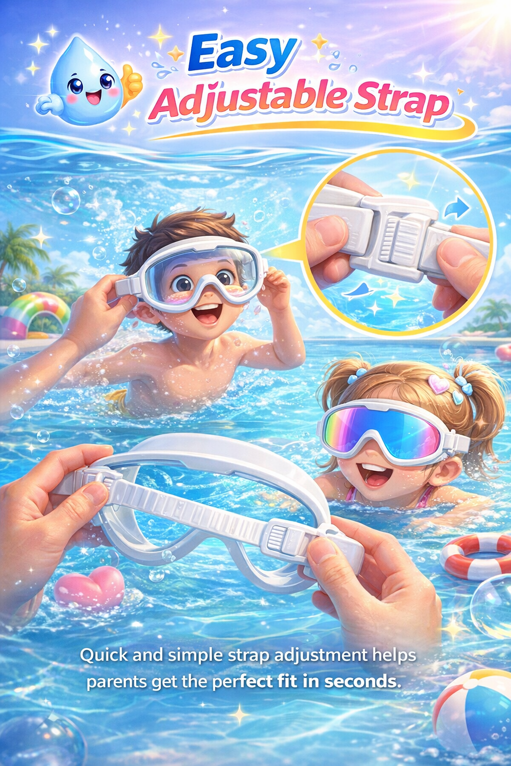Perfect for swim lessons, pool days, beach trips, and vacations, these goggles make every splash more fun.